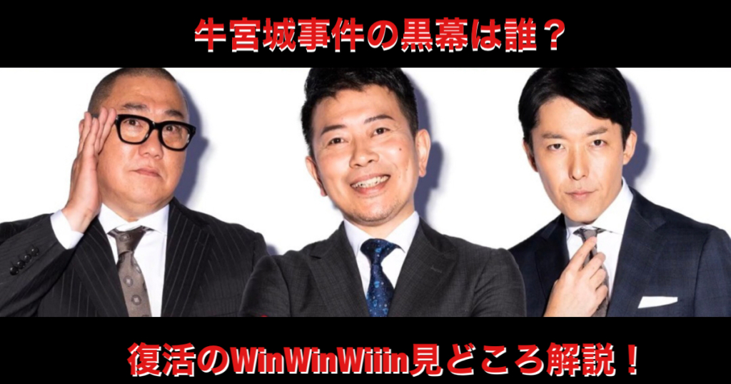 2022年1月15日にYouTubeでの番組「WinWinWiiin(ウィンウィンウィーーーン)」が復活し、宮迫博之さんがゲストになることで話題となっております。 「ヒカル・宮迫の牛宮城事件に真犯人がいる!」と話す中田敦彦さんの予告動画を見ているとなんだかワクワク... -